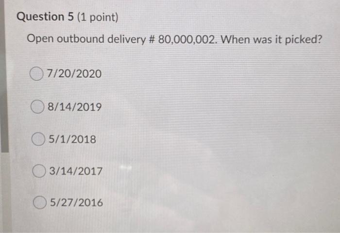 Solved Question 5 1 Point Open Outbound Delivery Chegg Com